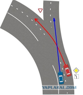кто прав тут по вашему, если синий поедет прямо в левую полосу?
