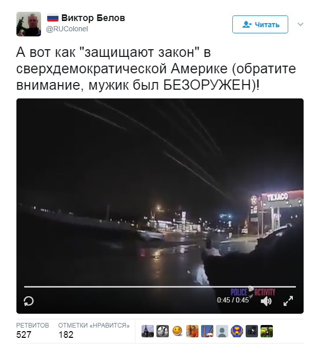 А то двруг еще начнут сравнивать. А так, все просто: видите, плохие копы там прям на улицах убивают невинных мужиков. Вот, вы приедете и вас тоже застрелят. И съедят. Вот.