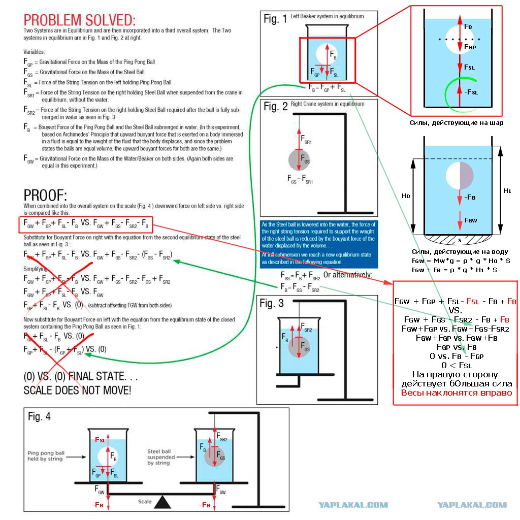 Иначе это приводит к ошибочному мнению, что и в левой части прибавился вес вытесненной воды шариком пин-понга.